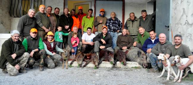 Sur l’autre photo, il s’agit d’une de nos nombreuses journées de chasse partagées avec des sociétés voisines. En l’occurrence, ce jour-là, nos amis Ascrossois sont venus partager avec nous une magnifique journée au cours de laquelle il y eut un beau tableau de chasse. Cette journée s’est terminée par un repas convivial dans la joie et la bonne humeur.